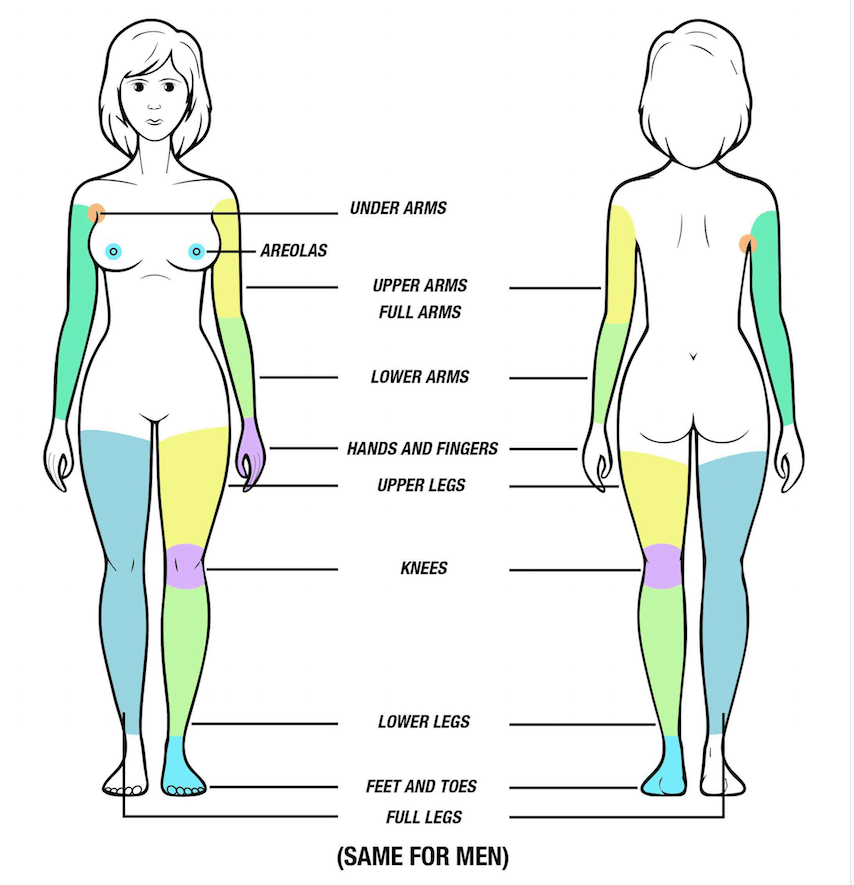 Shave the areas of treatment the night before each appointment.